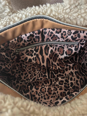 Binnenin vind je een verrassende panterprint voering die een speelse, stijlvolle twist toevoegt. De stevige handvatten en verstelbare schouderband maken de Teddy Chic ideaal voor dagelijks gebruik-van een dagje shoppen tot een gezellige winterwandeling.
