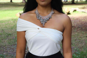 De materialen die gebruikt zijn voor deze ketting zijn Miyuki en Toho glaskraaltjes en  hij heeft een zilverkleurige sluiting.